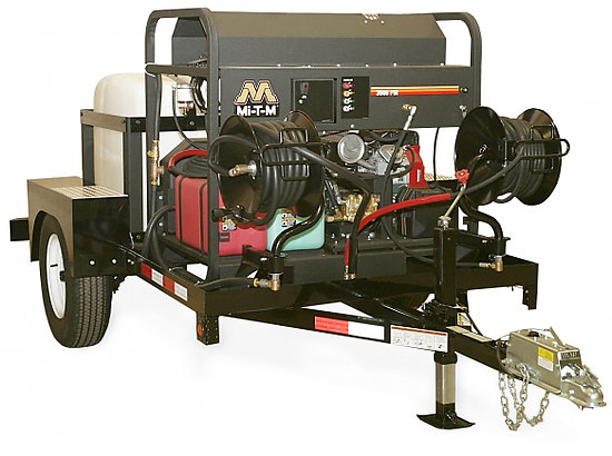 For the ultimate in portability: Purchase a single-axle trailer unit, add reliable Mi-T-M equipment to suit your application, and you are ready for the next job! Trailer units are used by heavy construction contractors, factories, well drillers, mines, military bases, road builders, contract cleaners, shipyards, municipalities and food services.